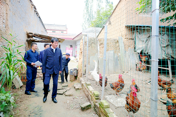 随後,趙廷周深入幫扶對象王新明家中,詳細了解了該戶家庭的養殖業發展情況。自2018年4月底起,在趙廷周書記的幫扶下,王新明家循環發展肉雞養殖業。今年4月份購入、目前尚未出欄的60隻,是他家養殖的第三批肉雞。前兩批肉雞平均銷售淨收入在3000元左右。發展肉雞養殖業,使王新明家有了相對穩定的收入,也積累了一定的肉雞養殖産業經驗。